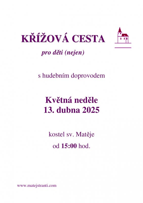 Na Květnou neděli 13. dubna od 15:00 v kostele sv. Matěje. S hudebním doprovodem.