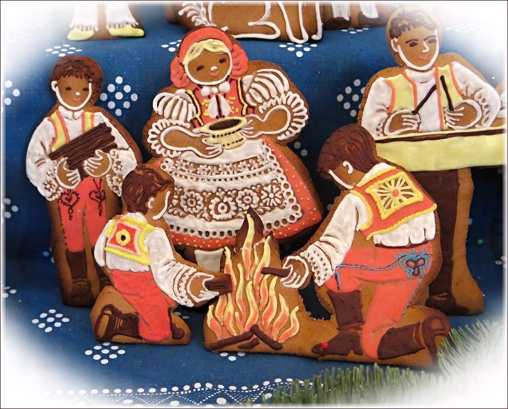 "Otci Machačovi se natolik zalíbily, že je nechal vystavit v kostele, aby se jejich krásou mohli pokochat všichni příchozí. Perníkové postavičky měly takový úspěch, že se jejich vystavování stalo o Vánocích tradicí."